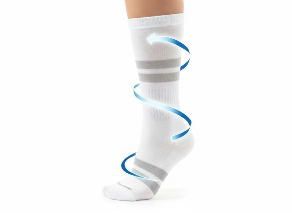 Postupna kompresija na području gležnjeva do koljena pomaže u poticanju protoka krvi, smanjujući natečenost i osjećaj težine čak i nakon dugih sati stajanja ili sjedenja.